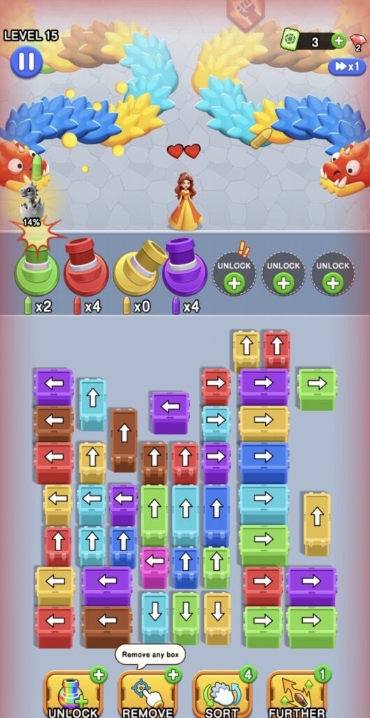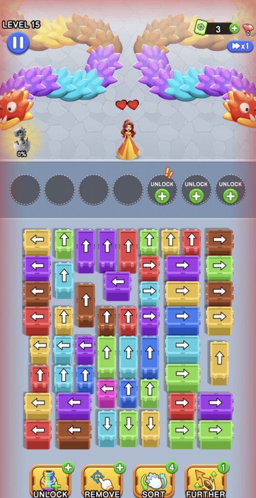 「GirlRescueDragonOut!」は無課金でも充分に楽しめます。広告を視聴すればアイテムや復活も出来るので、難しいステージでも割とクリアは出来ますね。