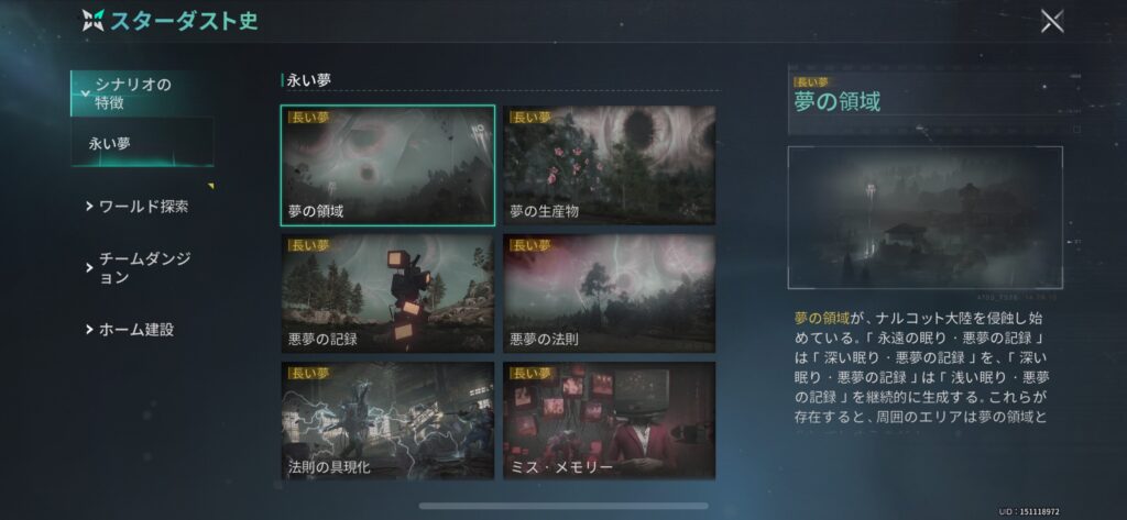 PvEのマニブス・白銀の荒野・永い夢とPvPの分かれ道・逆位戦争の5種類のシナリオが用意されていて、それぞれストーリーやミッションが異なるので、シナリオ毎に違った楽しみ方ができますね。