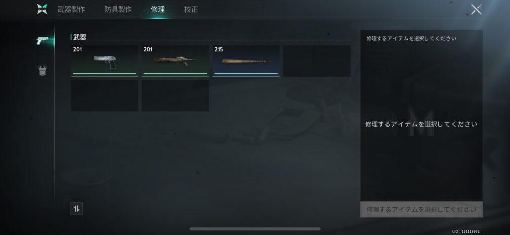 /武器や防具の耐久値は修理で回復可能です!\