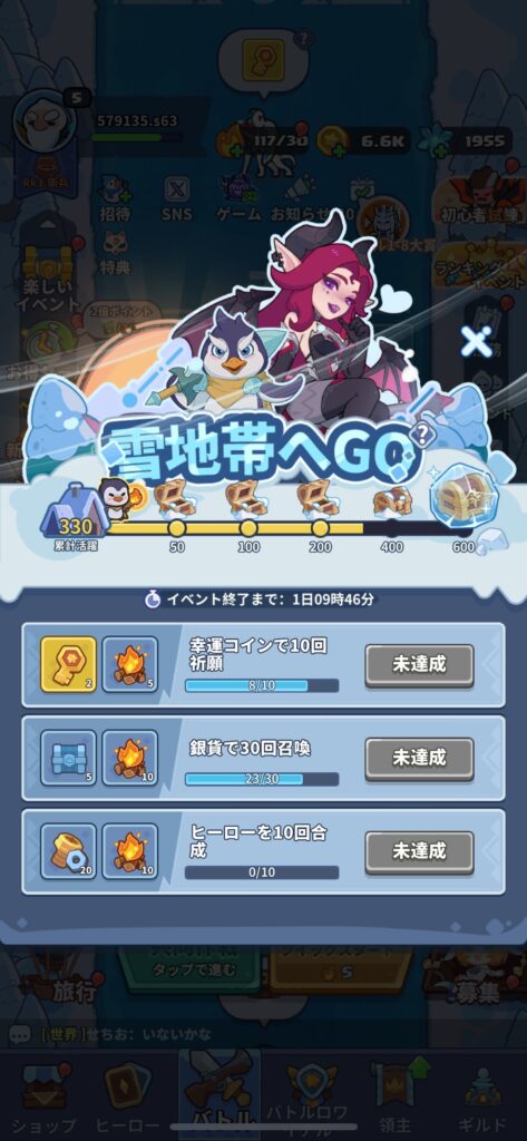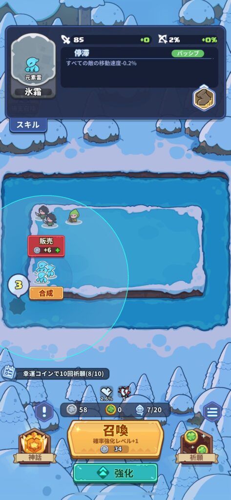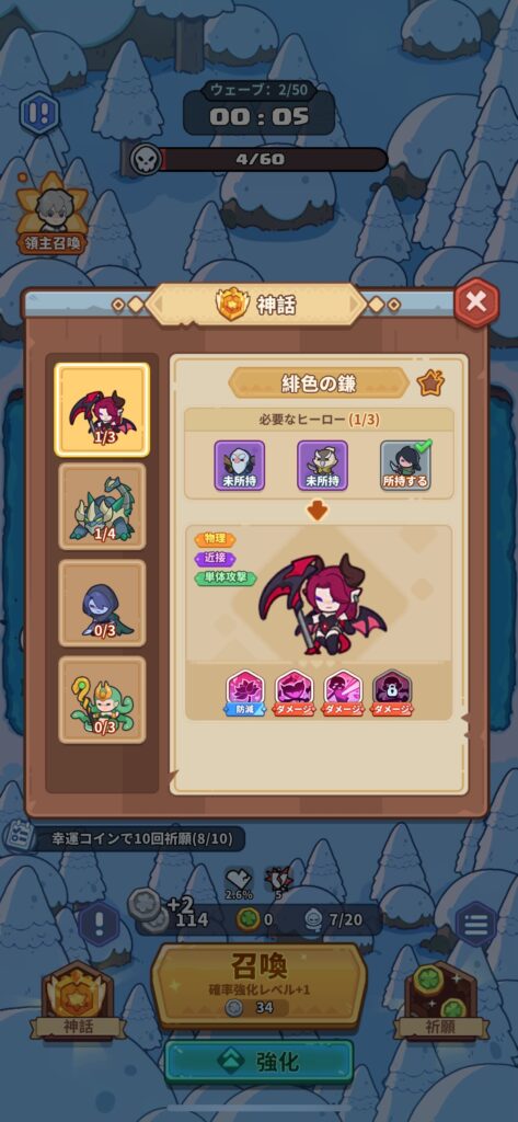 といっても完全に運のみというわけではなく、銀貨を消費してヒーローのステータスアップや召喚確率の強化を行うことも出来ます。完全に運のみという訳ではないので、戦略を楽しみたい方もちゃんと楽しめると思いますよ♪